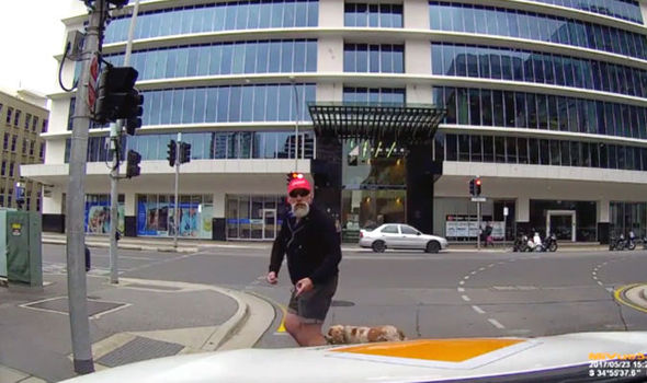 This video was captured by a dashcam at a traffic light. Here’s a nice driver waiting for the lights to wave way, and here’s another old human walking his dog.