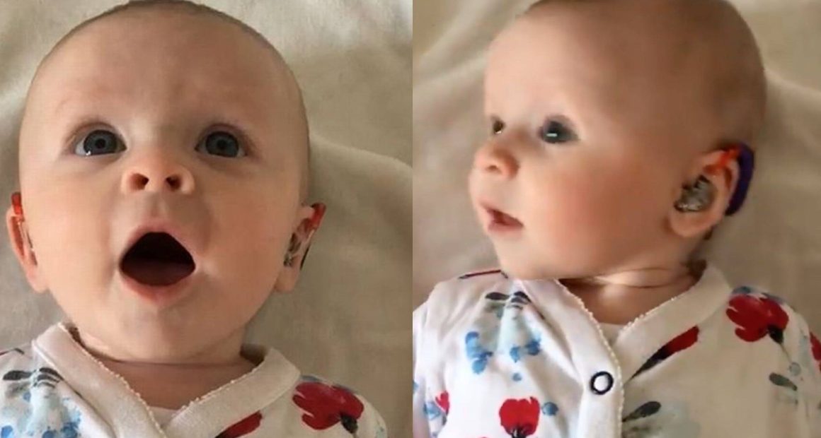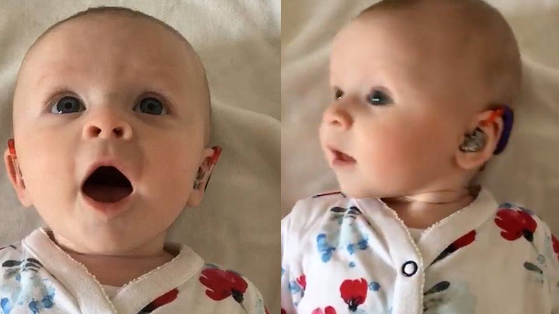The video shows the beaming little girl screaming with delight when she hears voices for the first time. After being posted on social media, it quickly went viral.