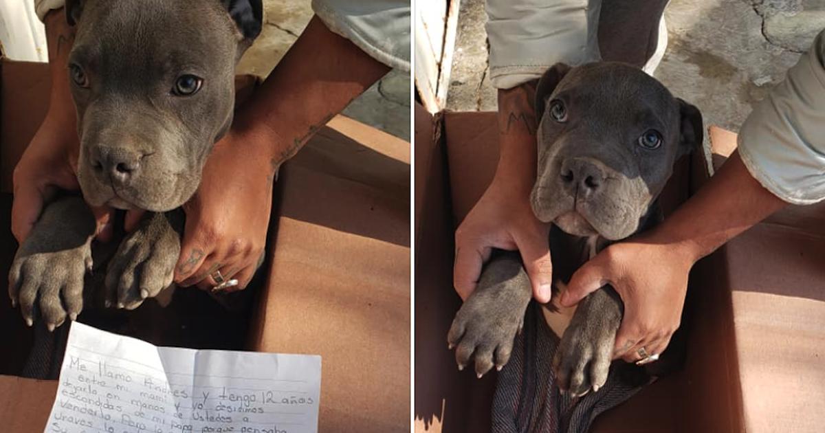A 12-year-old boy named Andres knew what was best for his little puppy even if it was difficult; He left the dog in a crate outside a shelter to save him from his abusive father. He made a note explaining the difficult situation.