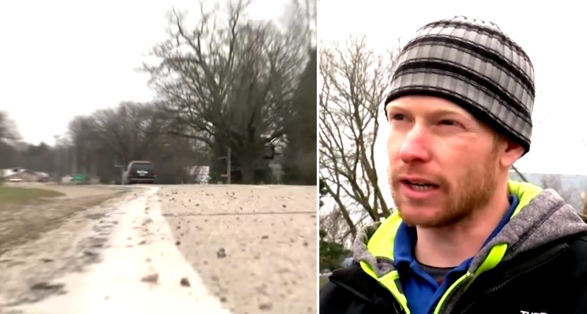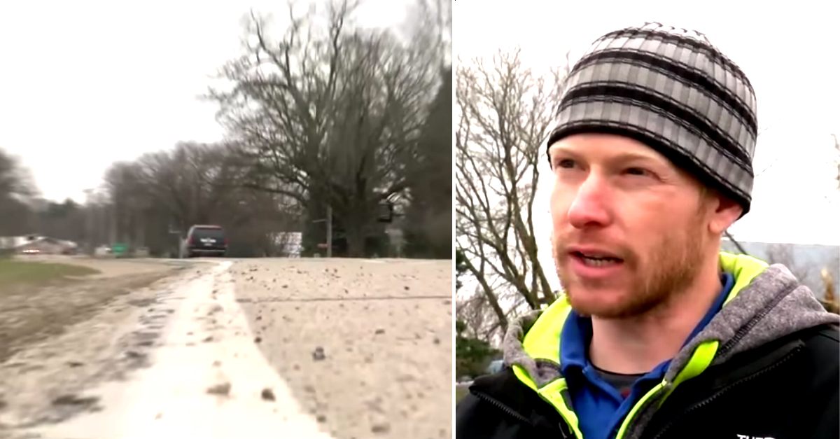 So Jason was driving with his colleague who is also a dad. They were taking the road on  a slick highway on a cold, rainy day when a horrifying sight made them immediately hit the brakes on the car.