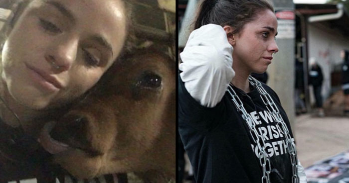 A 23-year-old vegetarian girl who fights for animal rights posted a video to the web from inside the slaughterhouse, as she comforted a calf with a cruel curse in its final moments.