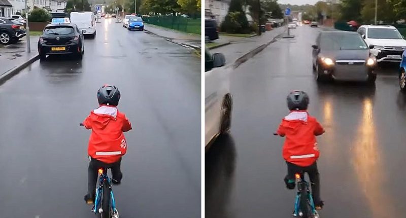 Father angrily confronts driver who recklessly passed by his 5-year-old bicycling on the road