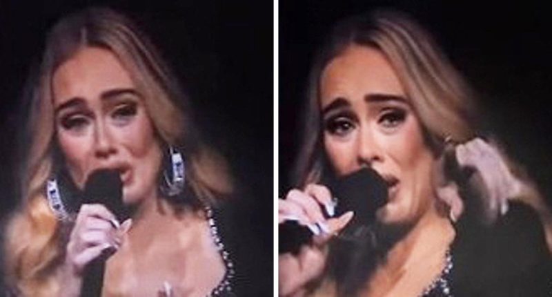 Adele sheds tears as she comes to the realization that an elderly gentleman in the audience has shared with her a photograph of his departed wife