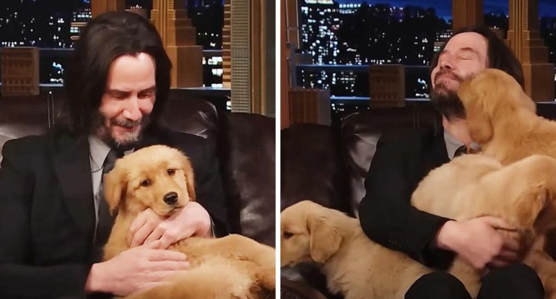 Fans are overwhelmed by the cuteness as Keanu Reeves struggles to keep a group of adorable puppies together