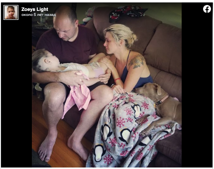 After Zoey’s passing, her mother Casey bravely decided to share their last moment together on Facebook. She wanted to show the world how beautiful that moment was, despite the pain they were all feeling. The picture shows Zoey’s parents with their arms around their precious daughter, sitting on the couch with the family dog.