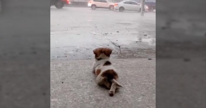Despite the bad weather, the puppy found a way to relax in the video. He stretched out by the front door, then gazed quietly at the beauty of the weather. The video has already reached over 41 million views on Facebook so far!