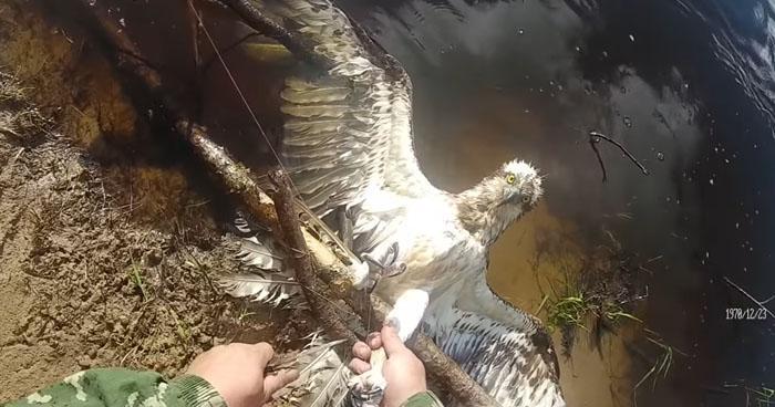 The author of the video wrote that despite the danger from the sharp claws and the large beak, he immediately decided to help. He released the eagle in less than five minutes, and thanks to his feat he won the support of many animal lovers on the internet.