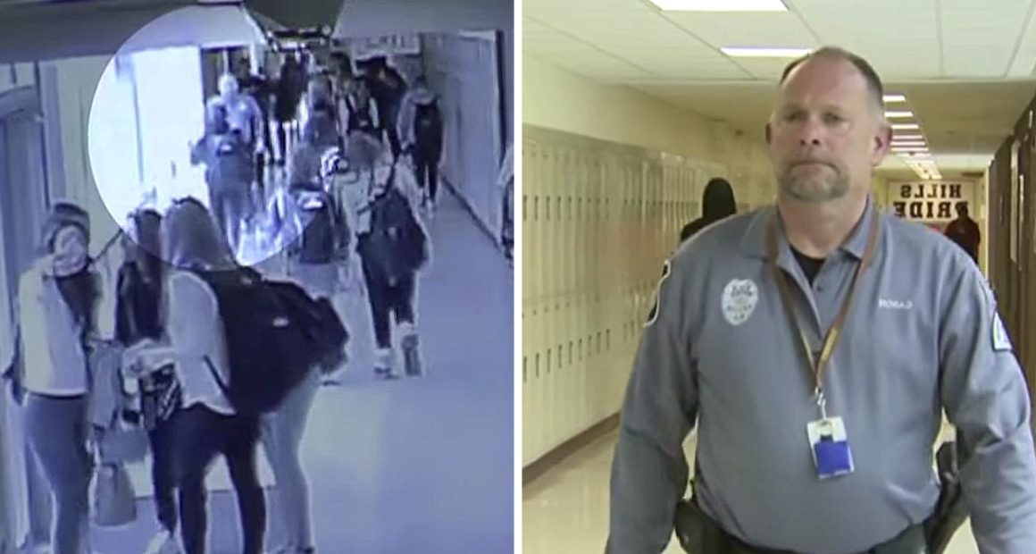 Sarah Bazini, who was 18 at school, was in a hallway. She was behaving strangely, so Officer Karon stopped by to find out what was wrong.