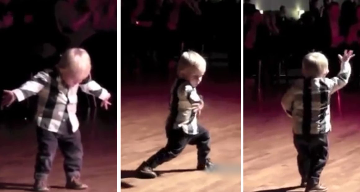 William Stokkebroe, 2-year-old stunned a crows when he dashed into the middle of a dancefloor, excited to show everyone what he’s got.