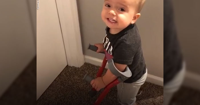 Watch how little boy Roman took his first steps using his crutches for the first time in his life!