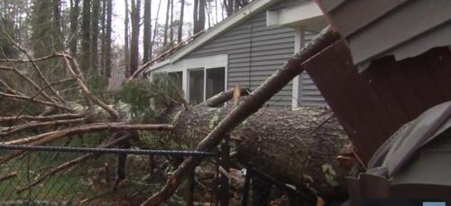 She called her niece as soon as it happened. Leann Strait says she looks after her aunt and Mary was home alone recovering from her recent heart operation when the giant tree crashed into the garage.